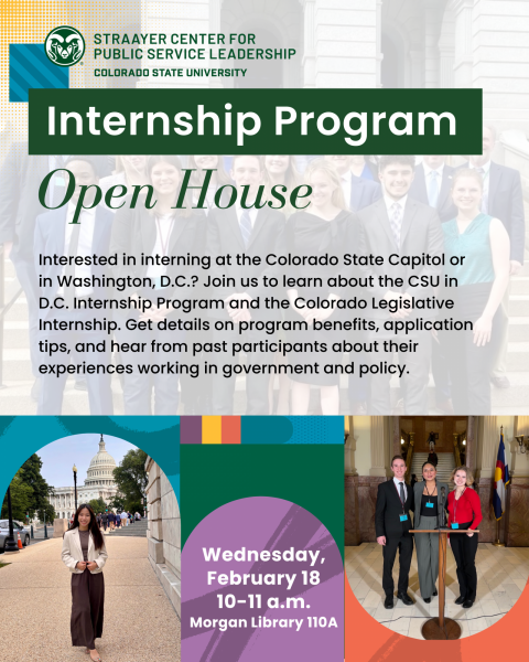Interested in interning at the Colorado State Capitol or in Washington, D.C.? Join us to learn about the CSU in D.C. Internship Program and the Colorado Legislative Internship. Get details on program benefits, application tips, and hear from past participants about their experiences working in government and policy.